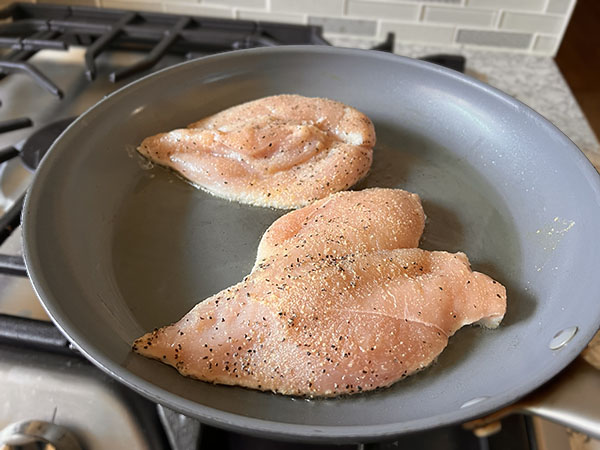 1. Preheat oven to 380F (190C). 2. Butterfly chicken: slice each chicken breast in half horizontally 3/4 way through. Season with onion powder, garlic powder, salt and pepper on all sides. 3. Heat oil in a skillet over medium-high heat. Open each chicken breast and sear cut side down for a minute (not longer than 2 minutes, otherwise it might become difficult to close it back), close back and sear one side for about 3 minutes, turn and sear the other side for another 3 minutes. 4. Transfer to the oven and cook for another 5-7 minutes, until the internal temperature is 165F (74C). 5. Meanwhile, prepare the veggies and bacon. 6. Spread some mayo inside each chicken breast, add lettuce, bacon, tomato and onion slices. Serve.