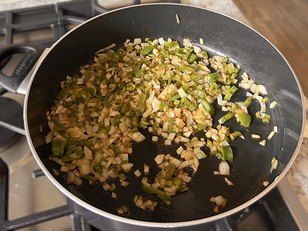 This delicious and healthy recipe for Spiced Chicken and Riced Cauliflower Skillet is perfect for those who are looking for a low-carb and gluten-free meal. Juicy chicken thighs are seasoned with cumin and smoked paprika, and then baked to perfection. The flavorful cauliflower rice is made with onions, bell peppers, garlic, kalamata olives, and a blend of aromatic spices like cumin, Italian seasoning, and turmeric. The dish is finished with a sprinkle of fresh cilantro, adding a burst of freshness and color. This easy-to-make meal is perfect for a weeknight dinner or for meal prepping.